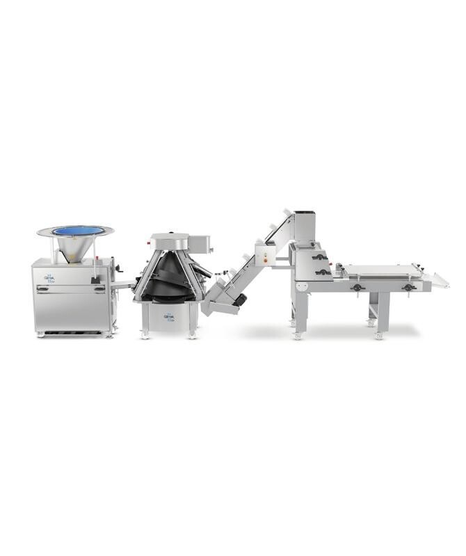面团直接成型线是为不需要中间醒发的面团生产过程特别设计制造的一条生产线。这条紧凑的生产线的产量可达1800个/小时。